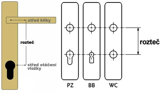 • Rozstup kovanie - vzdialenosť medzi stredom kľučky a stredom otáčania kľuky.