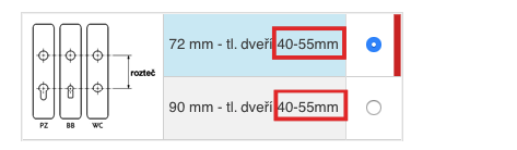 • Hrúbka dverí - tento rozmer je u kovania určený v podobe intervalu. V prípade, že máte dvere širšie, je možné doobjednať "predlžovací sadu".