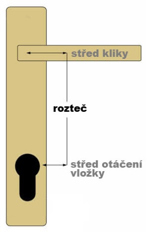 Rozstup môžeme definovať ako vzdialenosť medzi stredom kľučky a stredom otáčania vložky, čo znázorňuje aj prvý obrázok. Inými slovami je to tiež rozmer, ktorý hovorí, ako ďaleko je od seba os kľučky a os zámku.