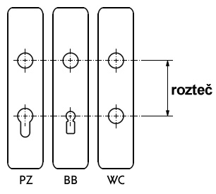 Najčastejšie sa môžeme stretnúť s rozstupom s veľkosťou 72 mm, čo je v dnešnej dobe štandardný rozmer. Tiež je ale používané 90 mm a 92 mm (predovšetkým u starších typov dverí) a prípadne v naozaj netradičných prípadoch aj 88 mm a 55 mm.