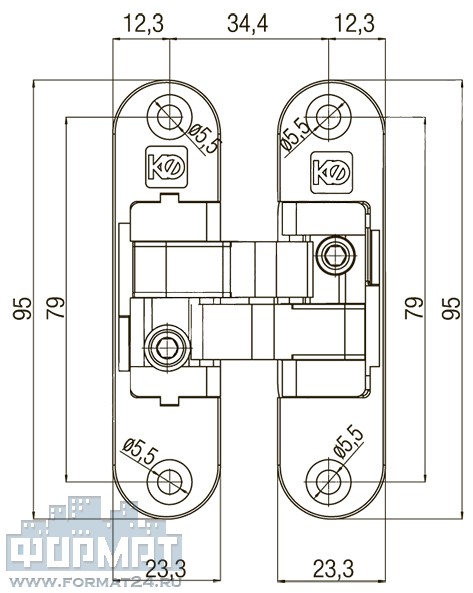Dverový pánt je skrytý pánt určený pre bezfalcové dvere minimálnej hĺbky 32 mm. Maximálny uhol otvorenia je 180 °. Dostupný je vo farbe chrómu.