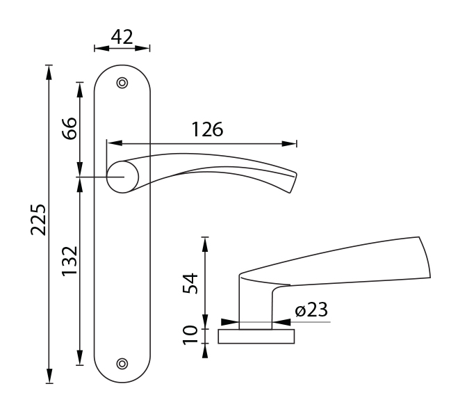 Tornado SO je nerezové štítové kovanie s oválnym štítkom a zaoblenou rukoväťou.